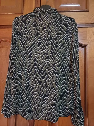 Elegante blusa de Mango con un precioso estampado. - Diseño de cuello alto. - Mangas largas. - Tejido fluido. Conserva la etiqueta, sin estrenar.