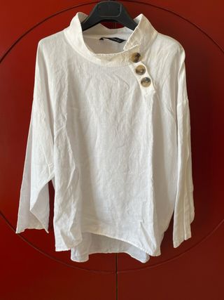 Camisa Zara blanca cuello alto botones