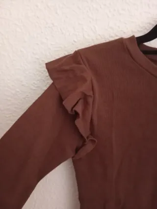 Camiseta marrón con un diseño original y costuras visibles. - Talla 40-42. - Manga larga. - Cuello redondo.