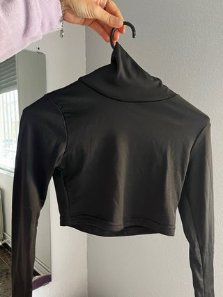 Top de manga larga con cuello alto. - Diseño crop. - Tejido elástico.