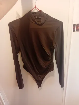 Body Bershka manga larga cuello alto marrón tanga