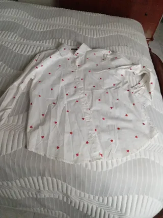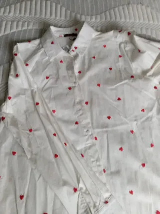 Camisa blanca mujer manga larga corazones rojos
