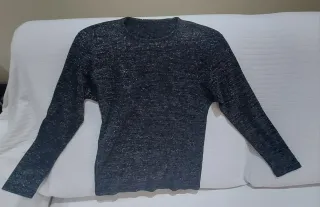 Preciosa camiseta de manga larga con un diseño elegante. - Adornada con lentejuelas plateadas en el cuello y a lo largo del frontal. - Detalle de fruncido central con botones decorativos. Gran calidad. - Tejido ultra suave y cómodo. No tiene bolitas.