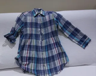 Camisa larga con un diseño de cuadros llamativo. - Manga larga. - Cuello camisero. - Cierre de botones.