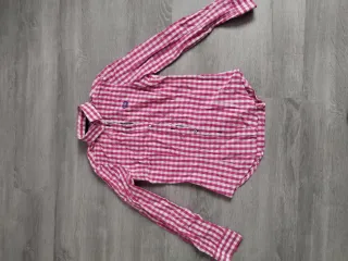 Camisa de rayas finas en color rosa, ideal para un look casual o arreglado. - Diseño de rayas verticales. - Cuello camisero. - Manga larga con puños.