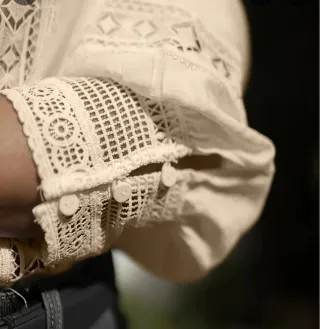Blusa de mujer beige con encaje