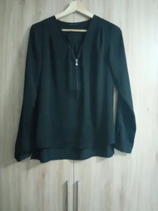 Camiseta negra de manga larga con detalle de cremallera. - Cuello en V. - Cremallera frontal plateada. - Diseño de capa doble en el bajo.