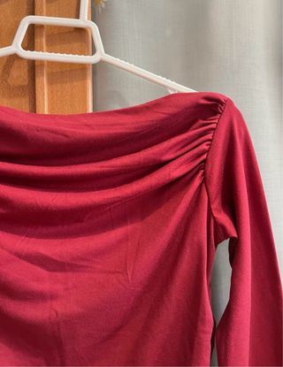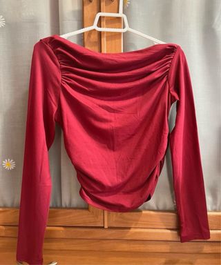 Top Shein rojo drapeado manga larga