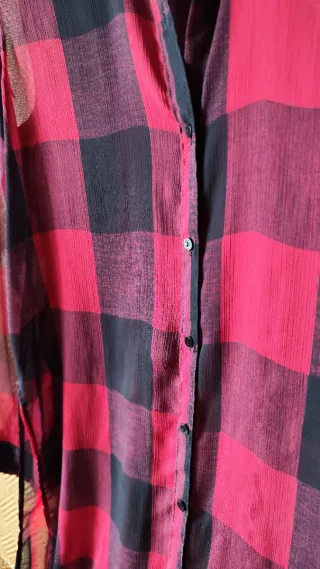 Camisa larga de gasa con estampado de cuadros. - Transparente. - Manga larga. - Cuello camisero. - Cierre de botones. - Apertura laterales. - Nueva. 🚀 Vendo por MUDANZA.