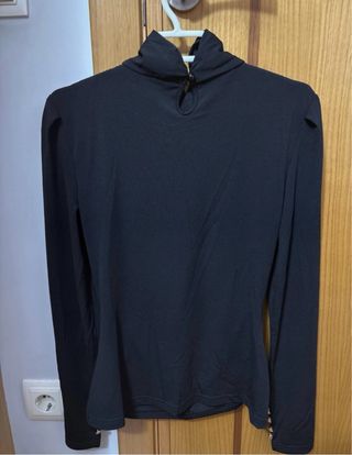 Camisa negra con cuello alto y manga larga