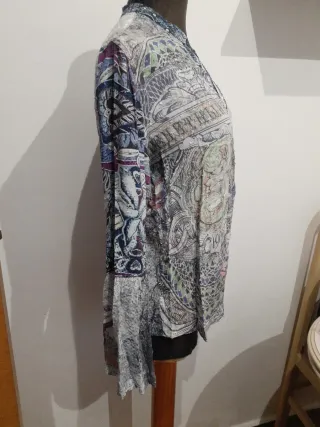 Muy original, con cremallera en la parte trasera,se puede llevar tanto cerrada como abierta,marca la cintura y queda muy bien. las mangas son diferentes,con la parte superior de malla suave y agradable. En muy buen estado.