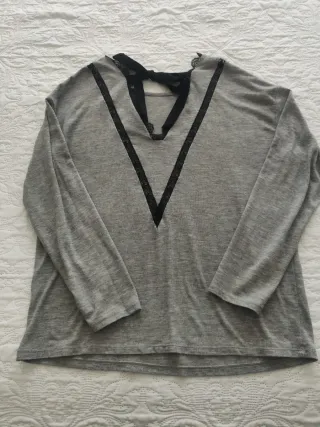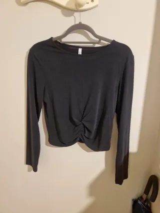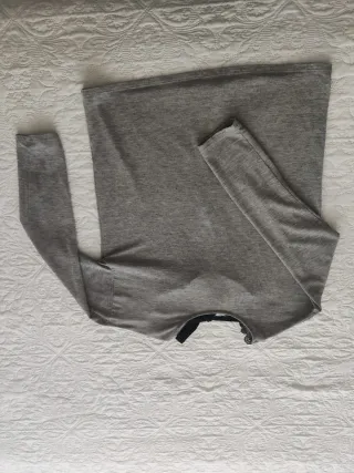 Camiseta de manga larga en color gris. Es una prenda básica y cómoda. - Cuello redondo. - Manga larga. - Apertura y lazo en la espalda TALLA M 38/40