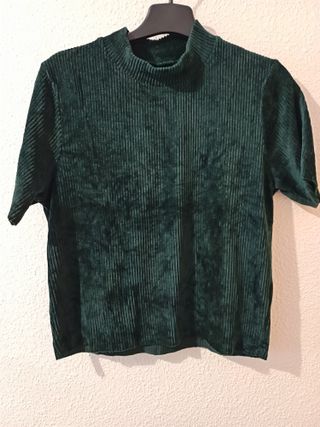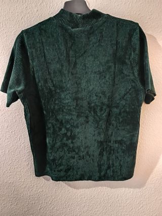 Camiseta de pana para mujer. Cuello alto. Tejido de pana con canalé vertical. Medidas: 51cm ancho, 53cm largo y 11cm hombro. Está en perfecto estado.