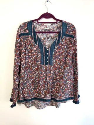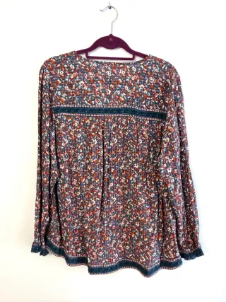 Blusa con estampado floral de talle suelto y detalles en mezclilla. En buen estado, se ha utilizado poco. Se aceptan ofertas razonables ☺️