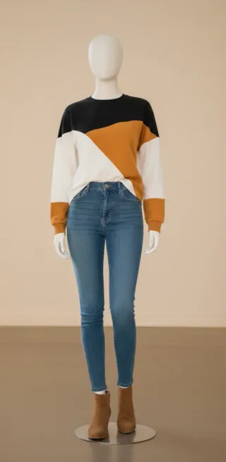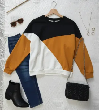 Blusa de mujer con un diseño moderno y original. - Diseño de bloques de color. - Mangas largas.
