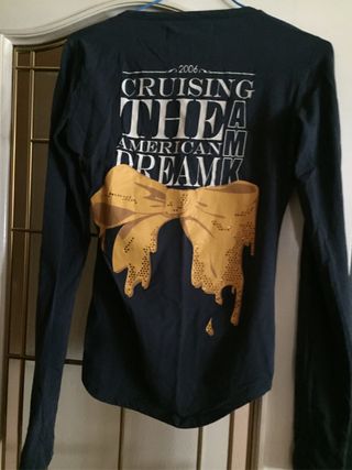 Camiseta de manga larga con un diseño gráfico llamativo en la espalda. - Estampado Cruising The American Dream con detalles brillantes. - Detalle de lazo dorado con pedrería.
