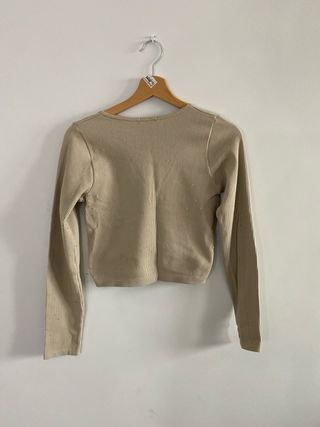 Top manga larga escote pico beige