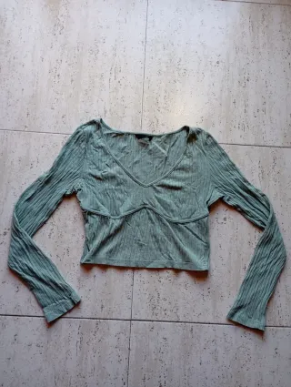 Top de manga larga con un diseño moderno y favorecedor. Su tejido acanalado le da un toque especial. - De algodon - Marca Shein - Talla M - Manga larga. - Cuello en V. - Tejido acanalado.
