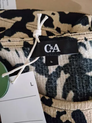 Camiseta C&A estampada beige y negra