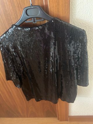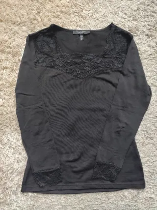 Camiseta con manga de encaje, equivale a una S, poco uso, hecho en España