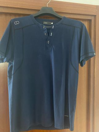 Camiseta de manga corta con un diseño moderno y detalles distintivos. - Cuello redondo con botones. - Logo en la manga izquierda. - Costuras en contraste.