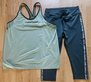 Conjunto deportivo de dos piezas para mujer. Nuevo sin etiqueta 🏷 - Camiseta sin mangas de color verde. - Pantalón capri de color gris con detalles en los laterales.