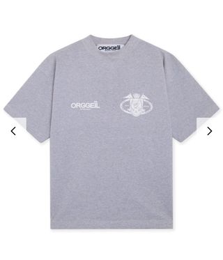 Camiseta de manga corta de la marca Orggeil en color gris. Presenta un diseño con el logo de la marca en el pecho y un escudo decorativo. - Logo de Orggeil en el pecho. - Diseño de escudo en el lateral derecho.
