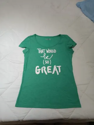 Camiseta verde con frase That would be so great