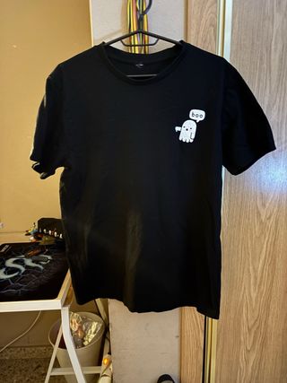 Camiseta negra con un divertido estampado de fantasma. - Diseño de fantasma con la palabra boo. - Manga corta. No se que marca es, la que pone no lo es