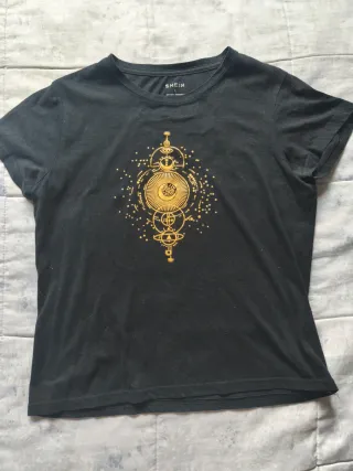 Camiseta SHEIN Negra Estampado Dorado Talla L