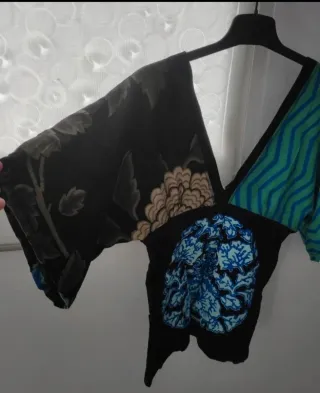Camiseta con un diseño original y llamativo de la marca Desigual. - Mangas amplias con estampado floral. - Paneles con estampado de zig-zag. - Detalle central con estampado floral azul.