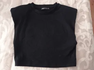 Camiseta de manga corta de Zara. - Diseño con hombreras marcadas. - Cuello redondo. - Tejido suave y cómodo.