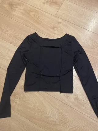 Top de manga larga con un diseño de espalda abierta y tiras ajustables. - Manga larga. - Espalda abierta con tiras.