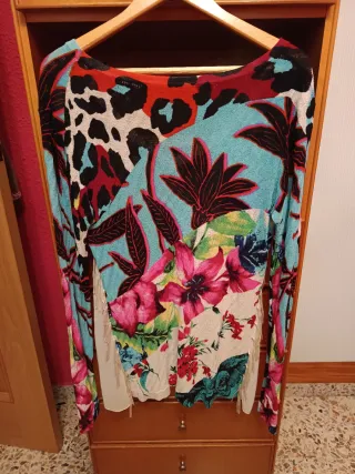 Camiseta de manga larga con un estampado vibrante y llamativo. - Diseño con flores y estampado animal. - Paneles de tela en la parte inferior. - Adornos de cuentas en los laterales. -NUEVA