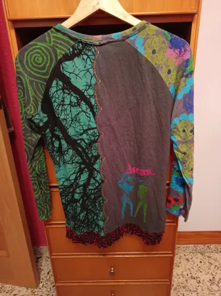 Camiseta de manga larga con un diseño de mariposa. -100% algodón - Estampado de mariposa en tonos rojos y azules. - Cuello redondo. - Talla XS. -*Solo venta en persona*