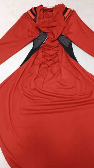Disfraz superheroína basado en Wanda Maximoff, de la película Doctor Strange. También serviría como arquera renacentista quitando el fieltro de la camiseta negra térmica que hice. Una sola puesta. El vestido rojo con capucha y lazos cruzados, tiene elástico y es más corto por delante (91cm) que por detrás (112). Medidas aproximadas: 106 pecho, cintura 96, hombros 107 y 74 de mangas.