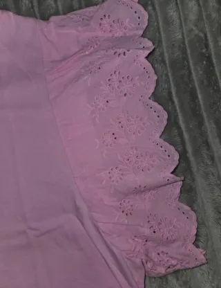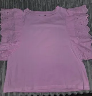 Camiseta de manga corta con un diseño muy especial en las mangas. Solo me la he puesto 1 vez, esta nueva. - Mangas con volantes y detalles de bordado. - Cuello redondo.
