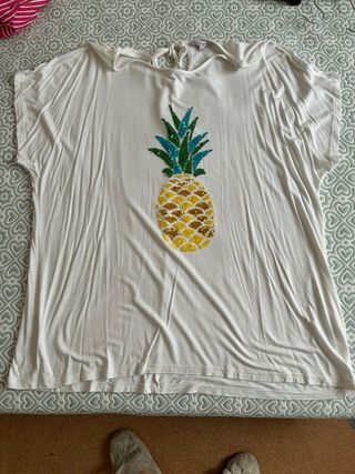 Camiseta blanca con un divertido diseño de piña decorada con lentejuelas. Talla XXL equivale desde 52-56