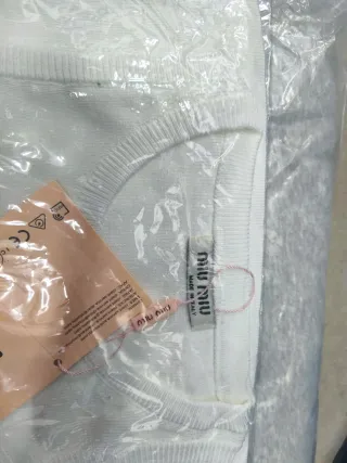 Camiseta de la marca Miu Miu. - Diseño con logo frontal de pedrería. - Tejido de punto. - Corte sin mangas. Talla S