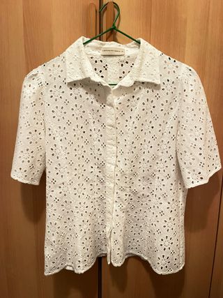Camisa de verano con un bonito diseño troquelado. Muy poco uso, en perfecto estado. - Manga corta. - Cuello camisero. - Cierre de botones. - Tejido ligero y transpirable.