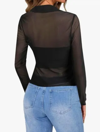 Camisa de manga larga con tejido transparente de Stradivarius, color negro, nueva a estrenar. Muy bonita y actual. - Diseño con cuello camisero. - Cierre de botones.