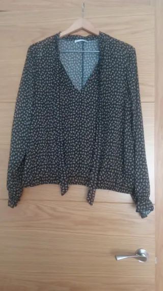 Blusa con un bonito estampado. - Diseño con cuello en V. - Mangas largas. - Detalle de lazada en la parte delantera.