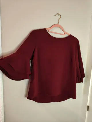 Camiseta de manga francesa con volantes. !!!! En perfectas condiciones!!!!! - Color burdeos. - Diseño con mangas acampanadas. - lazo negro en la parte posterior