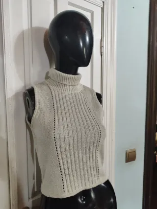 Fantástico top cortito de estilo punto, sin mangas. Es talla única pero vale S/M. Para referencia maniquí talla S En buen estado.