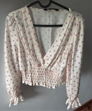 Blusa Zara satinada lunares rosa
