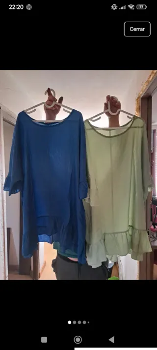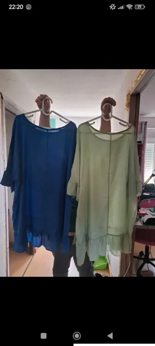 Conjunto de dos camisas o vestidos versátiles. Sin uso, entallan de la XL a la XXXL - Diseño holgado y cómodo. - Mangas con detalle. - Bajo con volantes.