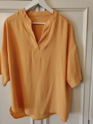 Blusa de manga corta con un diseño moderno y cómodo. - Cuello en pico con detalle. - Tejido ligero y agradable. - Corte holgado.