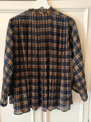 Preciosa camisa de cuadros de la marca Violeta by Mango. Es de manga larga y tiene un corte amplio y favorecedor. Los hombros presentan un bordado floral muy bonito. Talla L. Preguntar sin compromiso. Más cosas en mi perfil. :)
