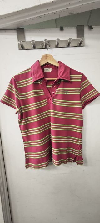 Polo de manga corta, una prenda cómoda y con un toque retro ideal para un look casual diario o deportivo. - Para mujer - Marca Thomas Burberry - Talla M - 100 % algodón - Diseño: Estampado de rayas horizontales en una vibrante combinación de colores burdeos, verde lima y blanco. - En buenas condiciones Se puede enviar o recoger en Tienda Solidaria Piel de Mariposa MADRID C/Embajadores 35 (+ info en la última foto).