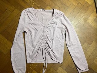 Blusa de manga larga con un diseño moderno y favorecedor. - Escote en V. - Detalle de cordón fruncido en el centro. - Mangas largas. Con muy poco uso, en pefecto estado.